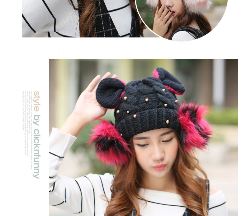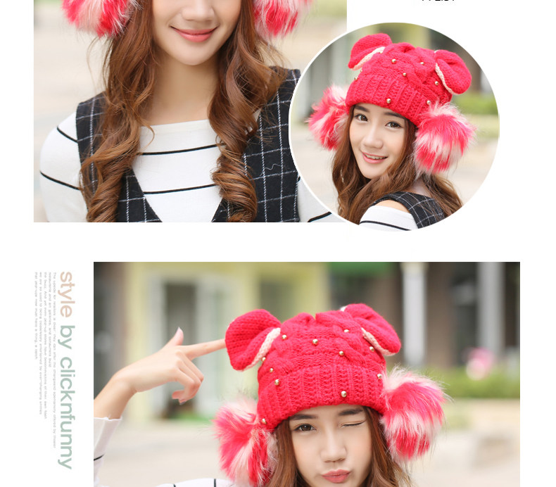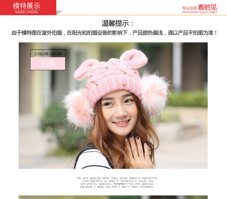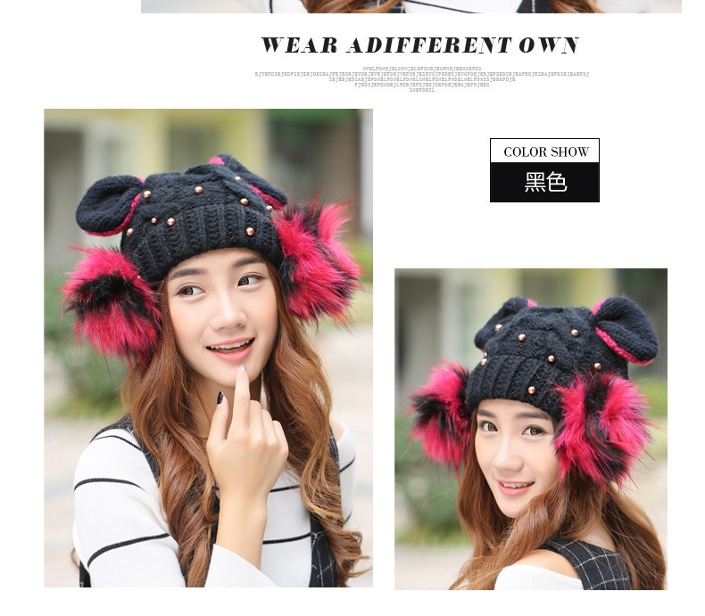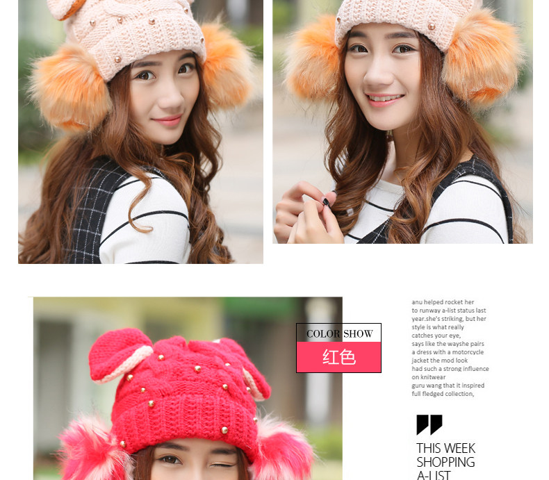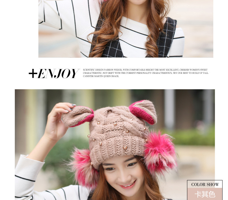 韩国可爱女生猫耳朵帽子女冬天恶魔角保暖针织帽韩版大球球毛线帽