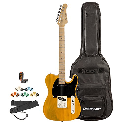Sawtooth ST-ET-BSB-KIT-2 Electric Guitar, Butterscotch with Black Pickguard