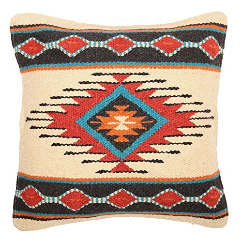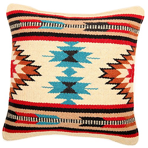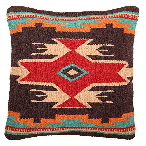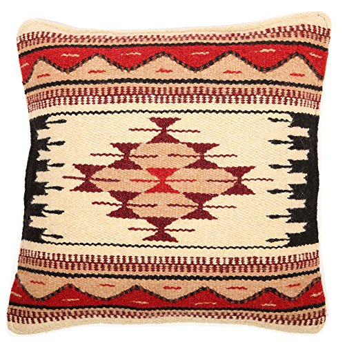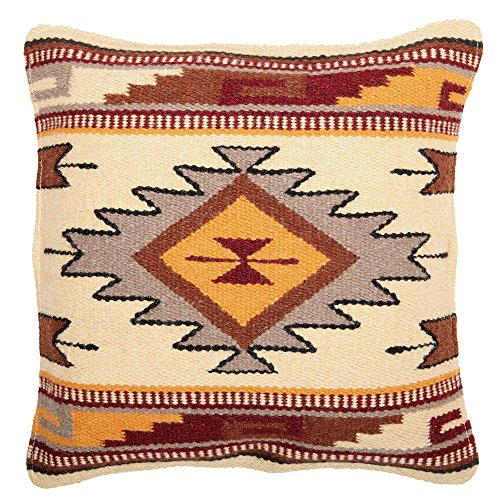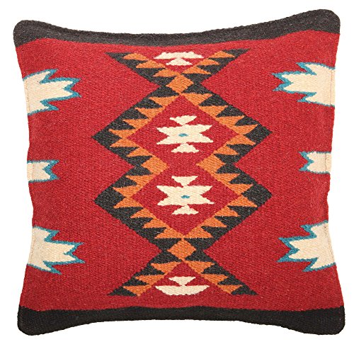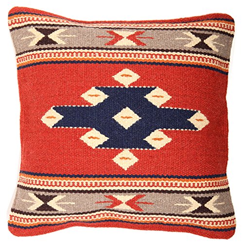 Let these beautiful geometric southwest designs bring a bold, enchanting feel of the rustic southwest to any room. These unique, high quality, hand-woven wool Throw Pillow covers are an amazing artistic expression of Native American, ancient Latin American, and southwest culture. Wool is naturally anti-static, Hypoallergenic, flame resistant, and stain resistant to endure years of regular use while maintaining its vivid color and beautiful look. Constructed with a sturdy canvas back featuring a strong velcro closure. Measures approximately 18 x 18 inches. Insert Pillow is not included. See our other listings for matching table runners, hand bags, tote bags and place mats. See MATCHING PILLOW INSERTS available at www.amazon.com/dp/B01B25ET5SFeature