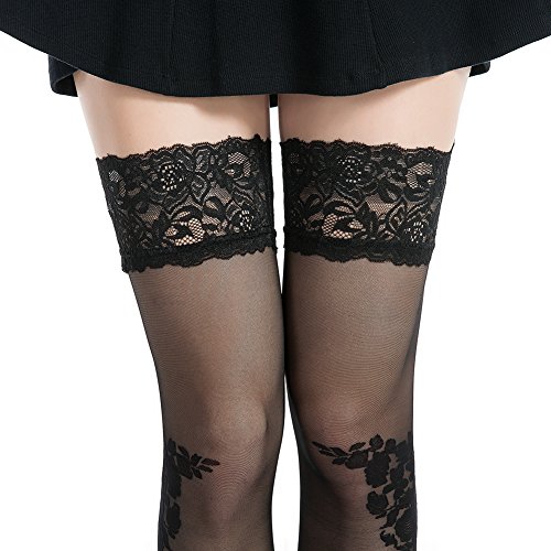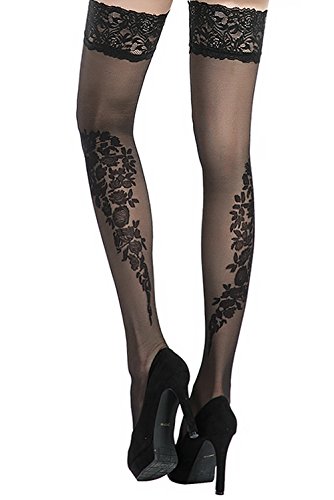 -. Title : Stocking Fox Women's 20-Denier Floral Stay-Up Lace Top Thigh-High Stocking
