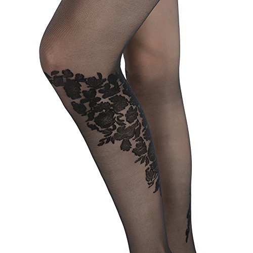 -. Feature : An Amazon brand / Thigh-high stocking featuring floral lace top and wraparound floral pattern at knee and calf / 20 denier