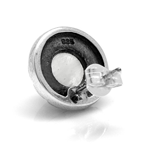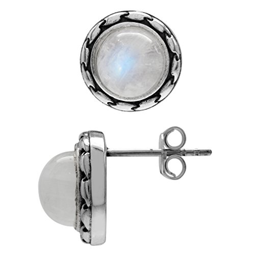 Natural 8MM Moonstone Antique Finish 925 Sterling Silver Stud/Post Earrings