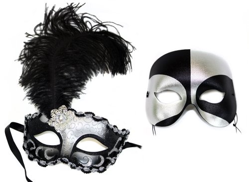 -. Feature : Deco Lady is Exciting in sparkling Silver and Black and a black and silver Masquerade mask make a perfect match for a Prom or Masked Ball / We have chosen TWO complimentary masks to form a COUPLE. / P.R.Ice is for TWO masks. / The masks are lightweight and comfortable to wear all night. / Our own original design hand decorated in the USA by our talented artists.