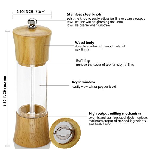 Studio : ACEHOOM Publisher : ACEHOOM Product Description ACEHOOM wood pepper grinder is easy to grasp and operate and made with ceramic grinder core, you can easily adjust the coarseness of them from coarse to fine. Acrylic visible body matches with genuine wood design, very sleek and compact which is durable and extremely usable and works with precision. The acrylic visible window can make you distinguish the salt and pepper or other spices easily. Fully separable designed, simply take off grinder for easy wash and clean. Enjoy every moment to prepare delicious dishes for your family and friends!