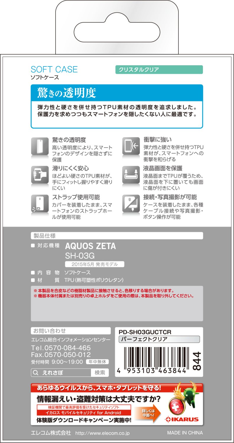 ■ docomo AQUOS ZETA (SH - 03G) is a soft case using a supple and supple TPU (thermoplastic polyurethane) material to protect it from scratches and dirt.