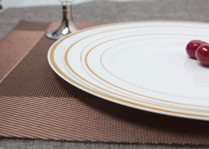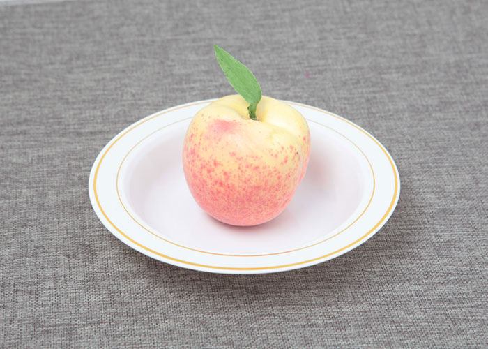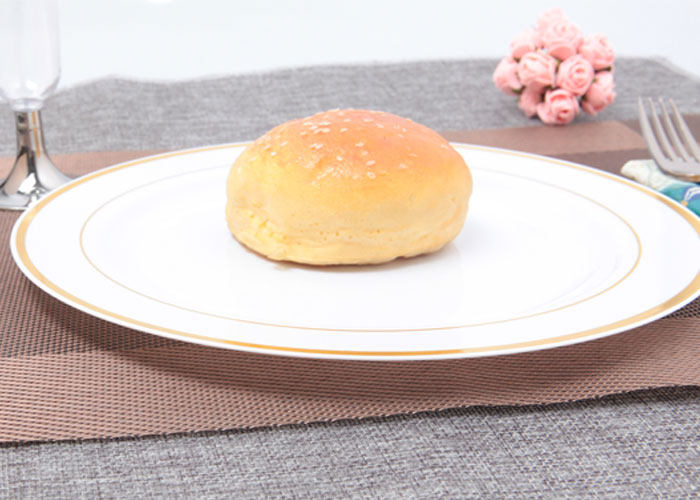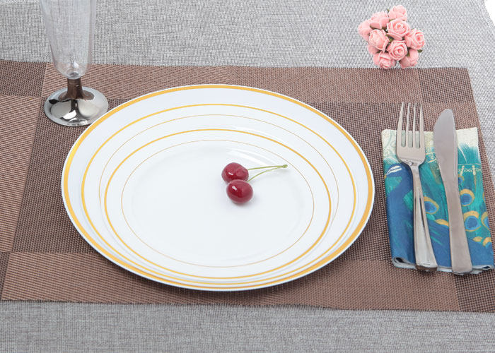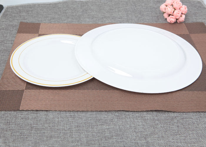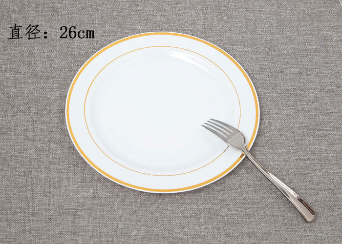 金边一次性塑料圆形西餐餐盘派对牛排沙拉白色餐盘 北欧餐具平盘
