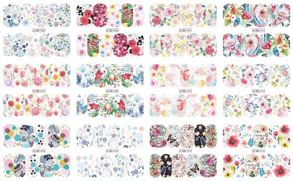 Designs 1:Flower Butterfly Flamingo Bird for Nails