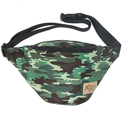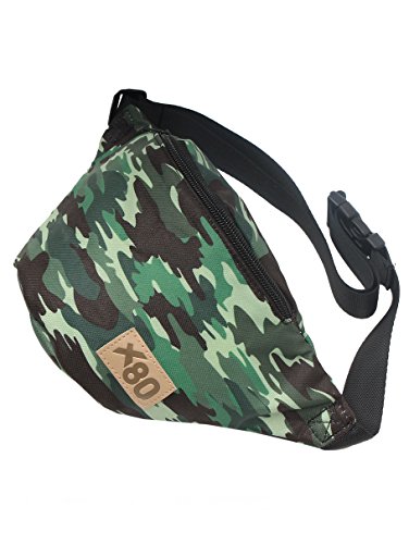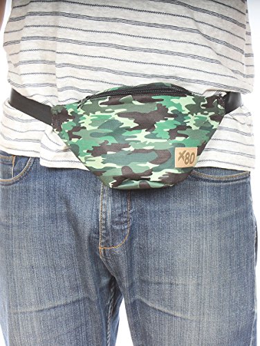 -. Brand : Extreme 80s -. Color : Camo -. Department : unisex-adult -. EAN : 0813390021643 -. Feature : Camo style fanny pack features black and shades of green colors. / Functional hip pack design featuring two compartments. / The adjustable strap fits waist sizes between 28-inches to 38-inches around / Perfect for hunting trips, camping, hiking, and every other outdoor activity. / Made from 100% durable nylon. -. Model : X80313 -. PackageQuantity : 1 -. ProductGroup : Apparel -. ProductTypeName : LAGE -. Title : Camo Fanny Pack -. UPC : 813390021643