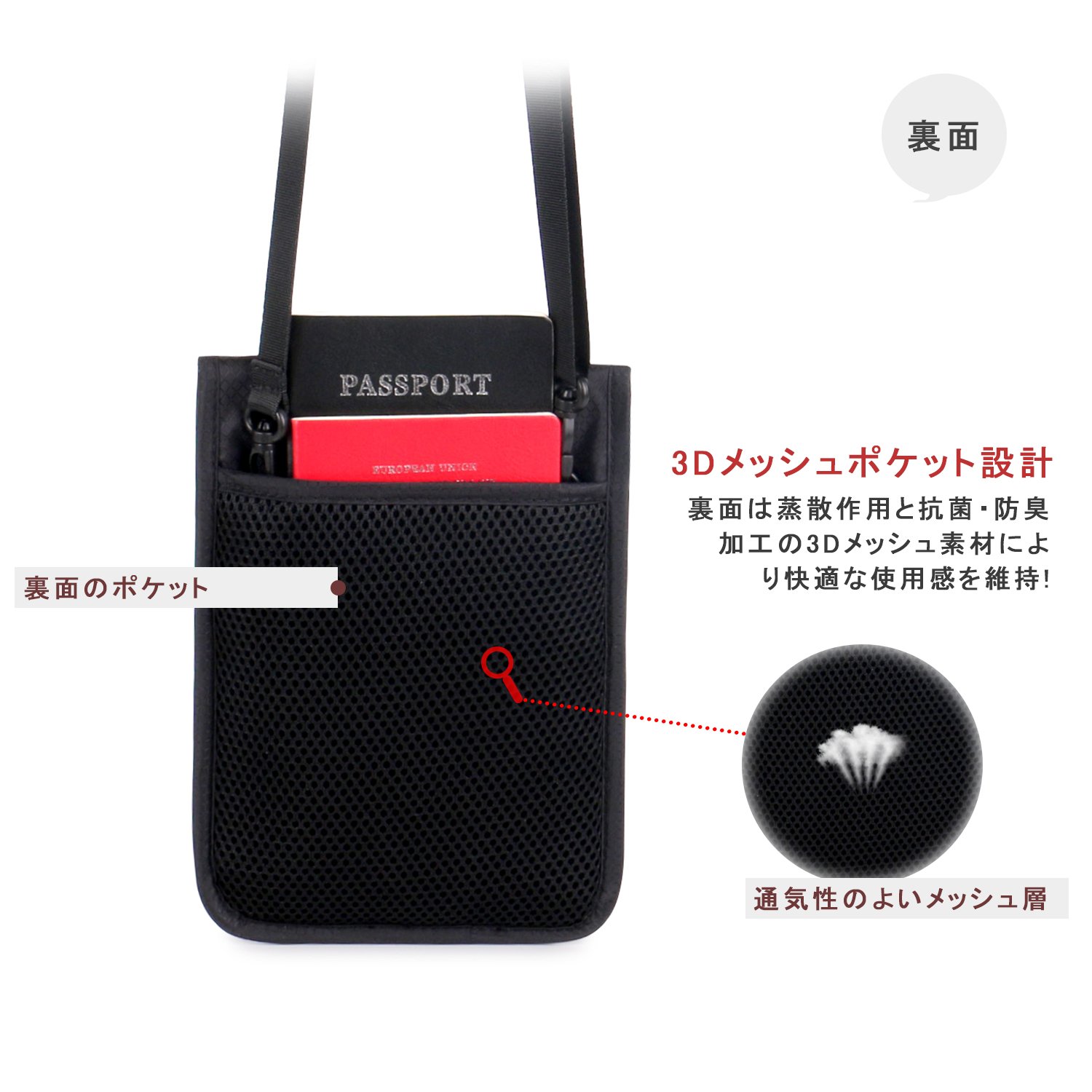 Passport management while traveling, storage of local currency, etc. Separate and carry it down from the neck and carry around.