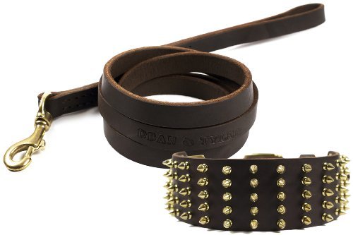 (Dean Tyler)/Pet Supplies/Flea Tick Control/DIRECT FROM USA/Dean Tyler Wide Spike Brass 20-Inch Collar with One Matching No Assumptions Leash, Brown