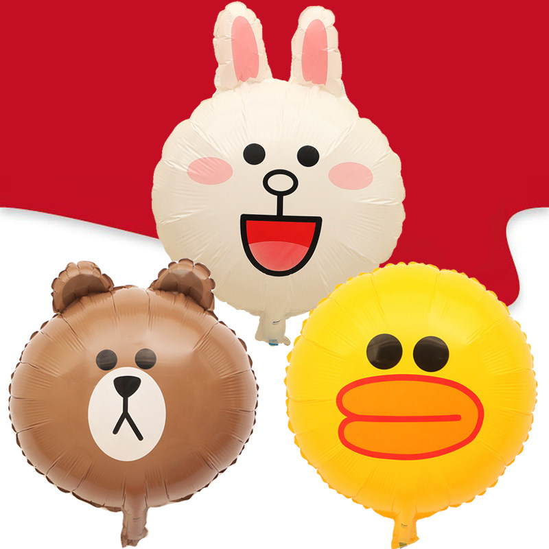 18寸卡通铝膜铝箔气球Line Friends布朗熊可妮兔莎莉鸭小熊头气球