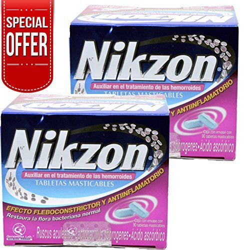 -. Title : Nikzon 90 Tabs.auxiliary in the Treatment of Hemorrhoids Chewable Tabs Anti Inflammatory 2 Boxes by Nikzon Genomma Lab