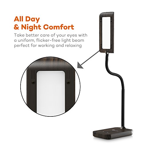 Eco-Friendly The TaoTronics TT-DL11 is a new generation of eco-friendly LED lighting for your home or office. As an LED it consumes 75% less power than traditional incandescent lights, while providing the same amount of light. This means a smaller electricity bill and a smaller carbon footprint. Vision Care LED provides uniform, flicker-free, and ghost-free lighting that is pleasant and comfortable for your eyes. Even after long hours of use, your eyes will feel less fatigued than with traditional types of lighting. Adjustable Lighting As a modern LED lamp, you can fine tune the brightness for your ideal illumination. Simply tap the control panel to turn the light on or off or slide it adjust the brightness with 7 different lighting levels. Lite Design The LED lamp is minimalist in design so it blends naturally on your desk, bedside table or study table. Made with a durable hard shell exterior and with a flexible gooseneck neck, you can adjust the light to the angle that is right for you. What's In the Box: 1 x TaoTronics LED Desk Lamp (Model: TT-DL11) 1 x Power Adapter 1 x User ManualFeature