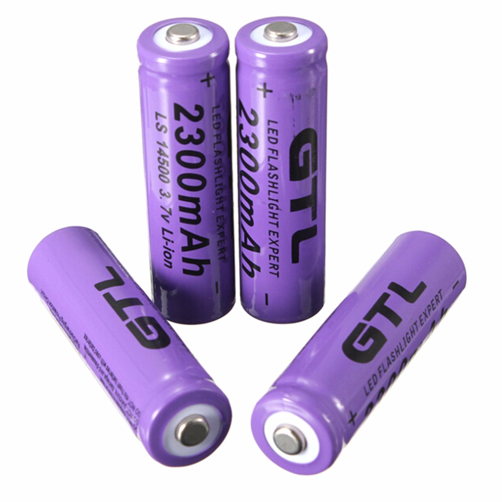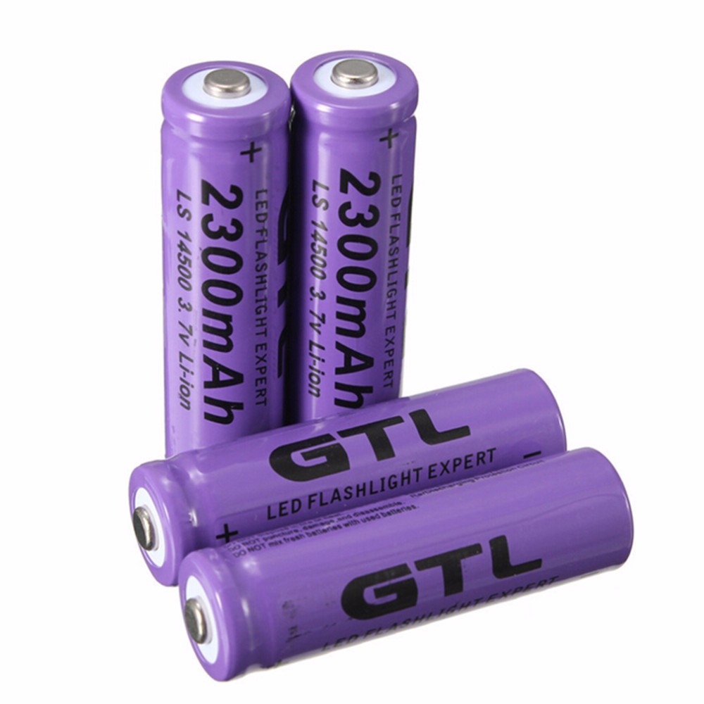 4Pcs 3.7V 2300mAh 14500 AA Li-ion Rechargeable Batteries 2A Lithium NiMH NiCd Battery Baterias Bateria Purple