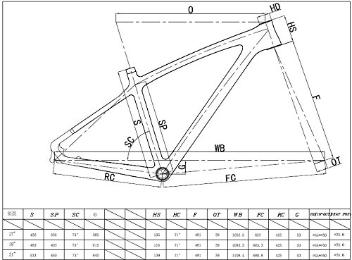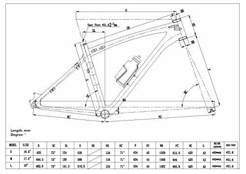 Studio : Xiamen HongJi Weiye Industrial Co.,Ltd Publisher : Xiamen HongJi Weiye Industrial Co.,Ltd Product Description FEATURES: Material:Full Carbon Fiber Including:FrameB024 seat clamp headset Coating:UD, Glossy Approx. Frameset Weight (g):Frame weight: 1397g±50g size: 17.5' Headset:NO.9(1-1/8',1-1/8') Cable Routing:Internal cable routing for front triangle, External cable routing for seat stay and chain stay BB Type:BSA BB Rear axle spacing:135mm Seatpost Size:31.6mm Seat Clamp Size:34.9mm GEOMETRY: Seat Tube (BB Center to Top):444.5mm Top Tube (effective):588mm Chain Stay (actual):420mm Seat Tube Angle:73° Bottom Bracket Drop:42mm Head Tube Length:124mm Head Tube Angle:71° Fork Length:434mm Fork Rake:45mm Wheelbase:1060mm 0