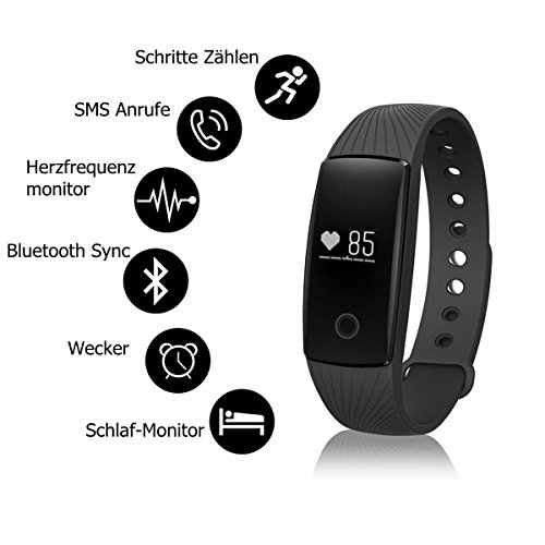 FITNESS TRACKER - Bluetooth 4.0,Erfordert Android 4.4 oder hoher, iOS 7.1 oder hoher.0.49 Zoll OLED Display und Full Screen rutschen,Laden Sie APP "Veryfit for Heartrate" von Apple Store oder Google Play herunter.Passend fur Samsung Galaxy S6 S6 Edge-S7 S7,iPhone 4s 5 5s 5c 6 6s 6 plus 6s plus.