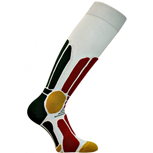 -. Feature : 70% Silver Drystat, 10% Nylon, 10% Spandex, 10% Elastan Lycra / Dynamic cushioning provides comfort and eliminates abrasion offering snow boarders high performance protection, less foot stress and a faster recovery time / Over the calf ski socks stimulate better blood flow to your feet to help reduce injuries, lightly padded at the stress points to promote comfort and support from the rigidity of ski and board boots / Keep your feet warm dry and comfortable with our exclusive DryStat fiber, optimum moisture control reducing the growth of bacteria and fungus / Eurosock, advanced technology exclusive material and superior craftsmanship weaved together to create the highest quality of ski and board socks you will ever wear