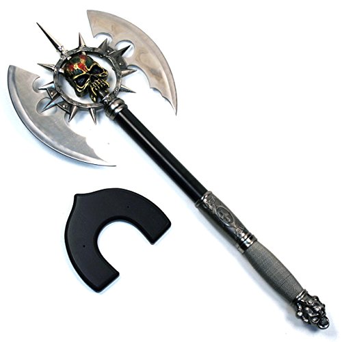 Ace Martial Arts Supply Death's Head Skull Fantasy Battle Axe with Plaque