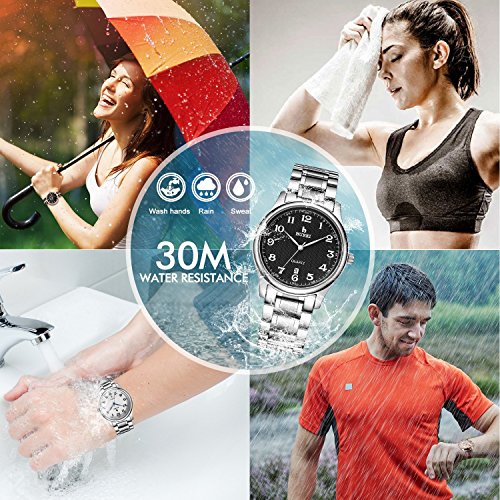Trendy&CLASSICAL DESIGN: White Arabic number; scratch-resistant mineral crystal lens; stainless steel bracelet