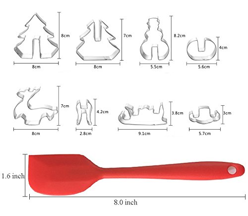 - ❤ High Quality Material: Our Christmas Cookie Cutters are made of 18/0 stainless steel, rust resistant, LFGB/US and FDA approved. Spatula is made of food grade silicone, environmental, non-toxic, non-stick, durable. Hand wash, dry immediately, no machine wash.