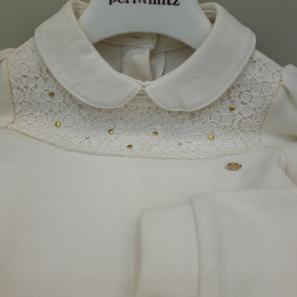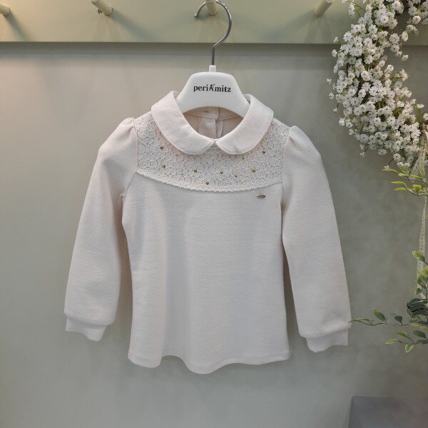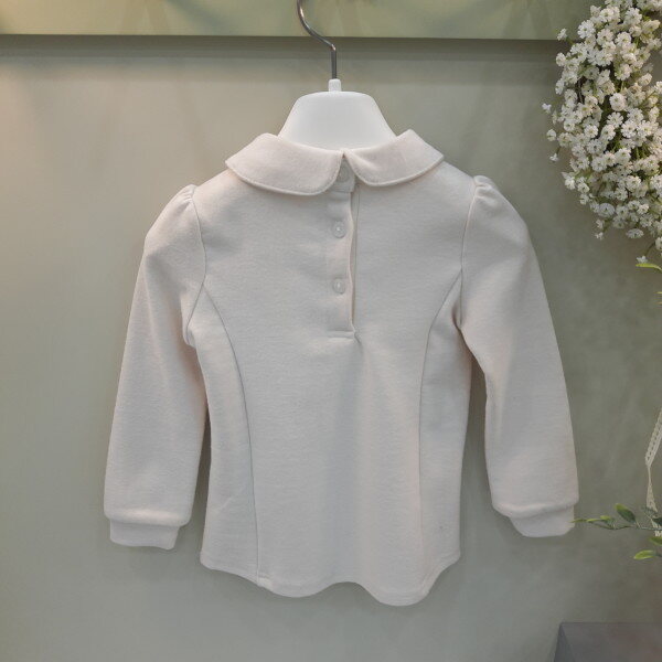 기모스판 티셔츠로 앞요크에 원단과 둥근 카라의 모양이 사랑스럽게 느껴집니다.