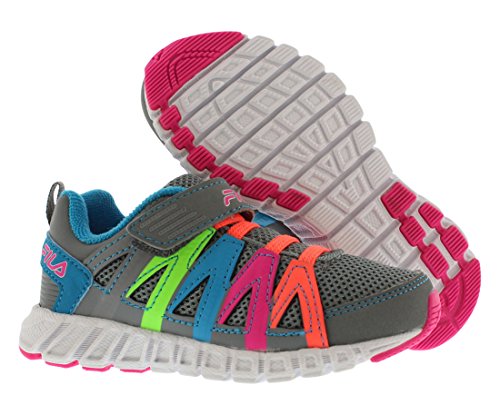 Fila Infants/Toddlers Crater Running Shoes. Mesh fabric upper for breathability. Synthetic overlays for structural support. Elastic lace-up front with velcro instep strap for secure fit. Flexible traction outsole.