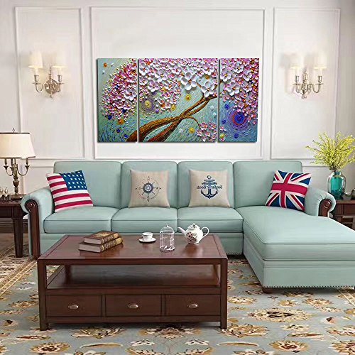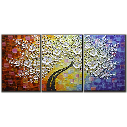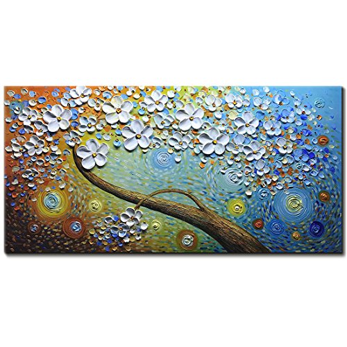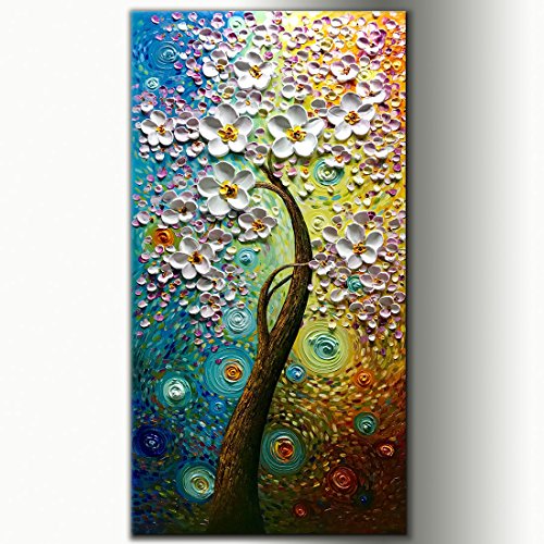 High quailty: Palette knife paintings ,100% hand painted. Part of the blossom petals up to 5 mm. Made of Imported Fine Acrylic, which can keep colorful permanently without fading and cracking.