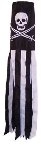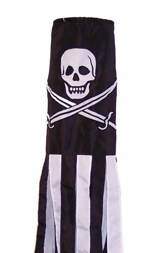 - The windsock body has a detailed Calico Jack appliqué and embroidered design. There are 8 coordinating streamer tails with sewn edges.