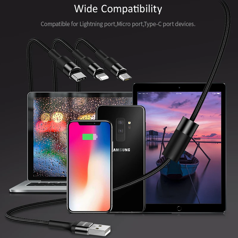Style:3 in 1 Micro USB, Type C and for iPhone data cable