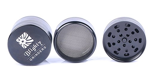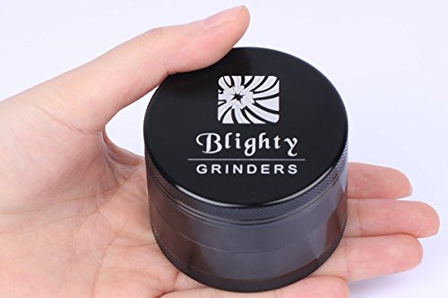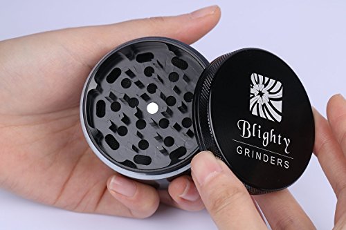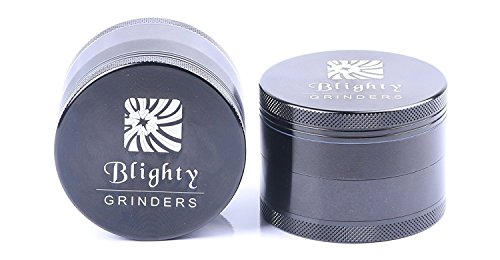 Blighty Grinders – Seriously Awesome 2.5 Inch Herb Grinder – 4 Piece with Pollen Catcher – Aerospace Aluminum (2.5” Black)