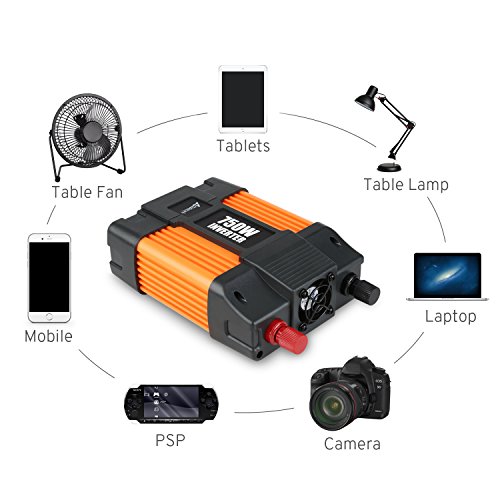 Provides you the power on the go: 750W continuous power output, 1500W surge capacity