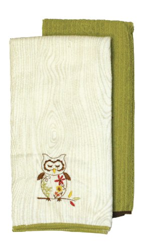 Ritz Sleepy Owl Collection Embroidered Microfiber Kitchen Towels, Set of 2