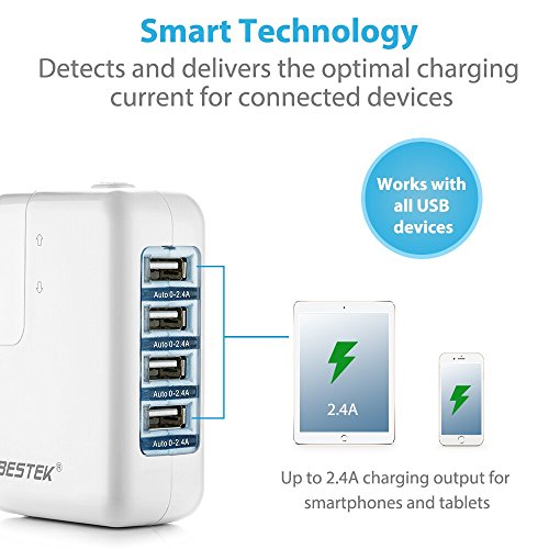 USB Wall Charger Multiport, BESTEK 35W 4 Port Power Converter with US UK EU International Travel Converter and Adapter Power Port 4 Charging Station Desktop Charger