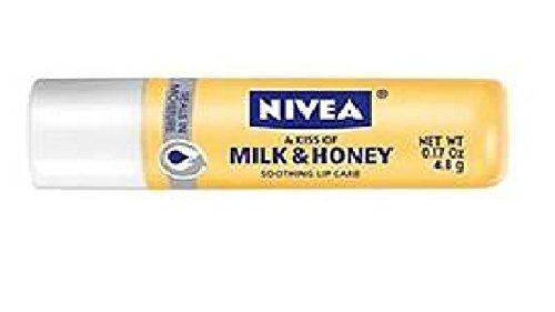 -. Binding : Health and Beauty -. EAN : 6996009013148 -. Feature : Delights Your Lips with Extra Rich Care / Inspires Your Senses with Delicious Honey Scent / Effectively Helps Protect Your Lips from Drying Out, Also in Cold Weather & Dry Air / Made in Germany / Soothing Lip Care -. Label : Nivea -. Manufacturer : Nivea -. PackageQuantity : 1 -. ProductGroup : Health and Beauty -. ProductTypeName : HEALTH_PERSONAL_CARE -. Publisher : Nivea -. Studio : Nivea -. Title : Nivea Lip Care A Kiss of Milk & Honey 0.17 oz (4.8 g)