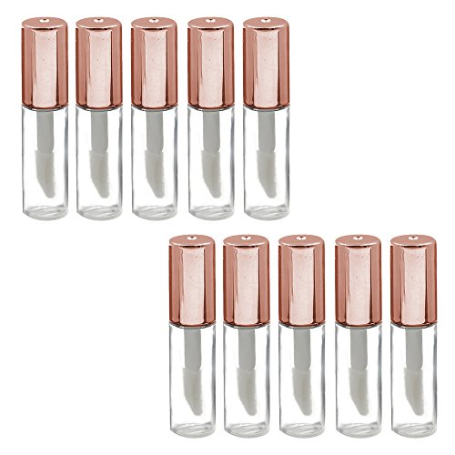 Sopear 10 Pcs 1.2ml Clear Lip Gloss Containers Empty,Mini Refillable Travel Empty Lip Gloss Tubes for DIY Lipstick Samples,Rose Gold Lid