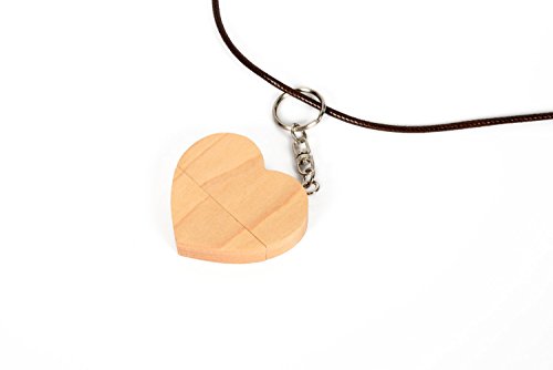 -. Title : 1 8GB USB 2.0 Wooden Maple Heart Flash Drive- Single Item - Heart Necklace Design