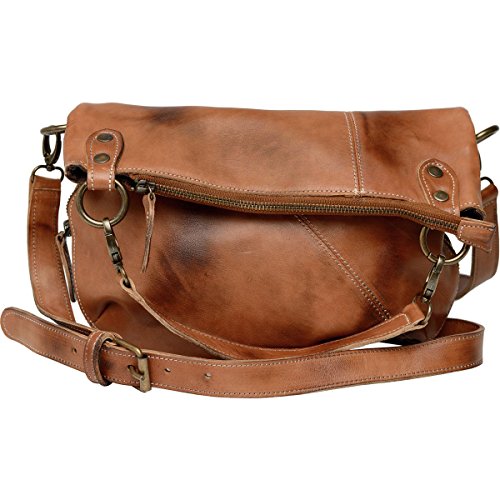*You'll always feel fab with this sweet arm candy! *Distressed grain leather material with hand-finished craftsmanship *Adjustable crossbody strap with 22" drop *Foldover flap with top zipper closure *Exterior includes zippered organizer pockets *Interior includes one back wall zip pocket and slip pockets *10-1/2"Lx4"Dx8"HFeature