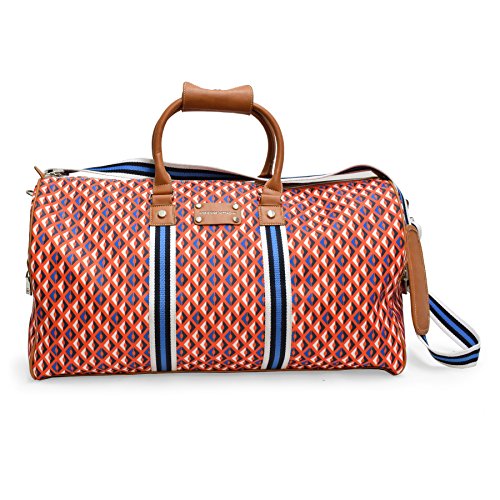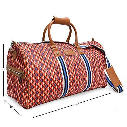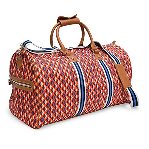 Fashion Duffel Bag Lightweight Large Capacity Portable Luggage Bag If you are traveling and plan on purchasing gifts or clothes this is perfect to get everything home in . Stop worrying about the space. The bag is very roomy and can pack a lot more than it looks. The bag has many compartments, Inside it has 2 open pockets and 1 zippered pocket and outside has 2 7 inch zippered pockets. It is ideal for travel, camping, hiking or go to the beach. Stylish and functional, it won't let you down! The buckles on the shoulder strap can be easily adjusted to use it as a hand bag or shoulder bag. Experience the comfort of stress free packing and traveling! Folds up super small and thin to fit inside smaller bags and gym lockers. 0 |
