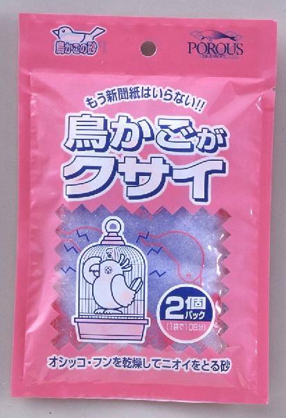 鳥かご用に開発した専用のシリカゲル砂です。今までの悩み(掃除の手間、ニオイ等)がこれで解消します。特殊シリカゲル(130ml)を40×40cmの鳥かごに1袋が目安で、ケースのトレーに均一に敷きます。1袋で約10日間使用できます。天然消臭剤入りでペットにも安心です。