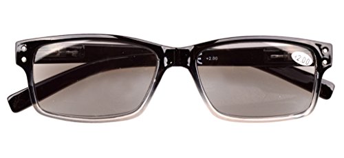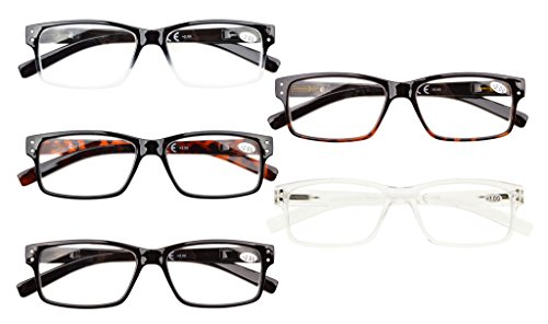 -. Feature : PRODUCTS DIMENSION-Frame material: plastic, Lens width: 2" (51mm), Frame width: 5 5/16" (135mm), Lens height: 1 1/4" (32mm), Frame height: 1 7/16" (37mm), Bridge (DBL): 1/2"(13mm), Temple length: 5 7/16" (138mm), Spring hinge: Yes, Lenses: Aspheric, Head size: Narrow to Medium.Rx-able frame / EYEKEPPER READING GLASSES OPTICAL PERFORMANCE-the pupil distance(PD) is 59-63mm,the deviation for pupil distance(PD) less than 2mm,the deviation for strength less than 0.02,the deviation for lenses's horizontal line less than 1mm / EYEKEPPER MENS READING GLASSES-5 pack at 1 Low Price,Sets come in 1 power of your choice.These are not mixed powers.Tinted lenses - great for outdoor reading.Classic-shaped frames, look good on any face. Spring-hinged temples, help glasses fit your face / QUALITY FRAME -FDA Registered Reading Glasses and Eyewear,Accord with ANSI Z80.3-2010,Accord with BS EN ISO 12312-1:2013 and EN14139:2010,Accord with AS/NZS 1067:2009,Top quality plastic frame,lenses and have spring-loaded hinges / LIFETIME BREAKAGE WARRANTY&30 DAY MONEY BACK GUARANTEE: In case any broken problem happens, contact the seller of Eyekepper without hesitation to solve the problem until satisfaction. Eyekepper provides lifetime after sale service for all Eyekepper reading glasses. Customers can return and get refunded for any reason. You have no risk to try