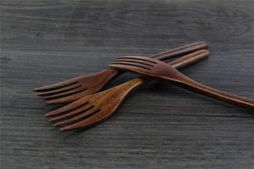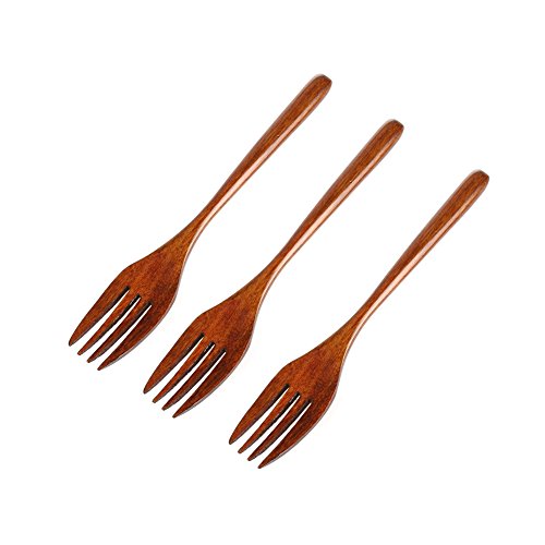 XH® 3pcs Hand-made Solid Wooden Fork Four Teeth 7"x1" (deep color)