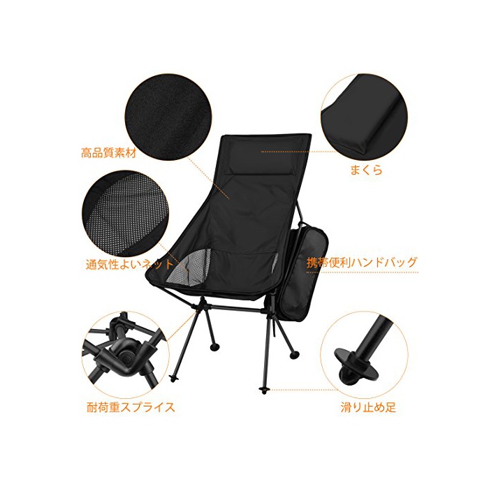 원본상품명: 折りたたみ 椅子 NoYuo レイチェア 耐荷重140kg キャンプ マクラ付き ポ?タブル アウトドアチェア 登山 釣り (ブラック)