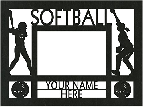 -. Feature : Personalized 4 X 6 PICTURE FRAME. Plaque measures 9"W x 12"H / Hand-stained 1/4 Baltic Birch in rich black finish / Softball Themed Picture Frame holds 4 x 6 photo / Saw tooth hanger included for wall mounting / Wooden feet included for tabletop display - see sample photo for how this looks