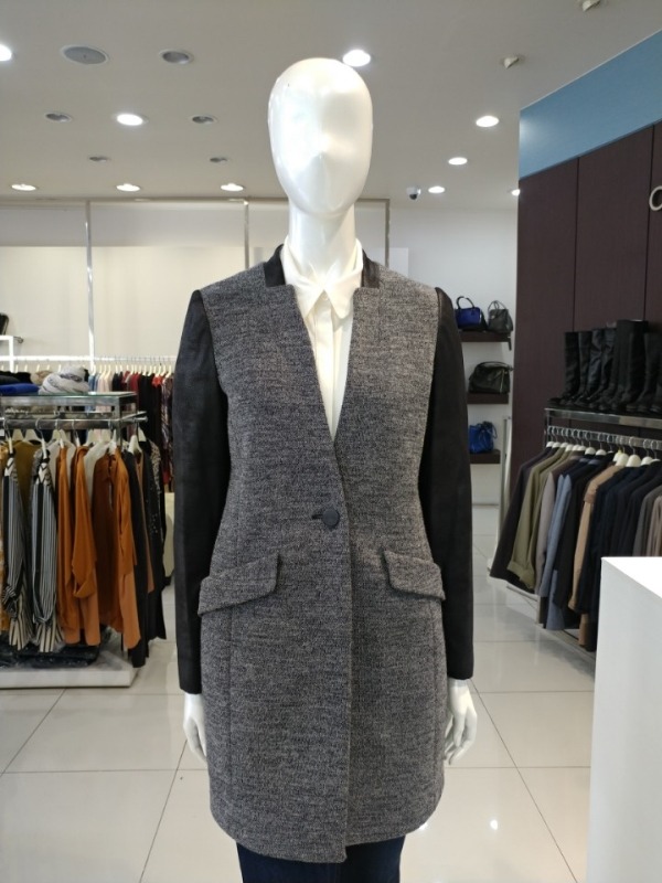 소매 스웨이드배색 멜란지 노카라자켓