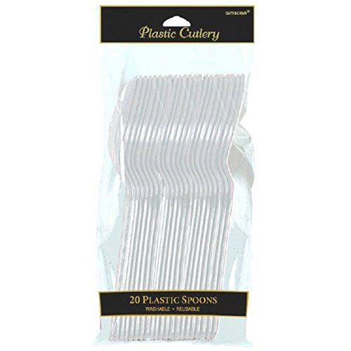 Party Perfect Reusable Plastic Spoons Tableware, Silver, Full Size, Pack of 20