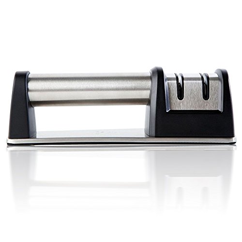 Eridge Professional 2-Stage Stainless Steel Knife Sharpener for Straight and Serrated Knives-Black Silver (NonSlip Base, NSF Certified)