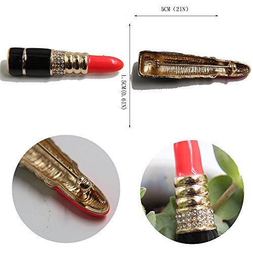 -. Binding : Jewelry -. Brand : Westree -. Department : womens -. Feature : Material: Alloy / SIZE:1.5*5cm/0.6*2(inch) / DESIGN:Special design and unique structure, a popular item. / VERSATILE JEWELRY - Great for casual wear, adds a pop of color to any outfit. / BEAUTIFULLY PACKAGED - Most of our jewelry arrives in a beautiful gift box, while bigger pieces are packed in neat organza bags. It makes a GREAT GIFT for anyone who loves rhinestone pins and brooches or fashion accessories. -. Model : B0029 -. MPN : B0029 -. PartNumber : B0029 -. ProductGroup : Jewelry -. ProductTypeName : FASHIONOTHER -. Title : Antique Golden Clear Crystal Red Lipstick Make-Up Cosmetics Trendy Enamel Brooch Pin