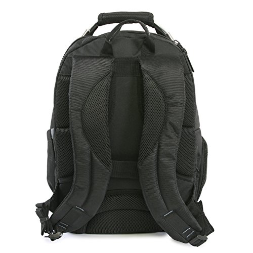 -. Feature : Laptop backpack made with 1680 denier ballistic nylon for great durability. / Full opening comparment fits up to most 15" laptops. Includes padded tablet compartment. / Large main compartment for files, folders, and other office documents. Size zippered pocket for small accessories like wallet, keys, or receipts. Three accessory zippered pockets. / Padded top handle for comfort. Mesh water bottle pocket. Padded back and shoulder straps for comfort. Includes pass through strap to attached to lage handle. / Internal organizer for notepads, pens, business cards and other supplies.
