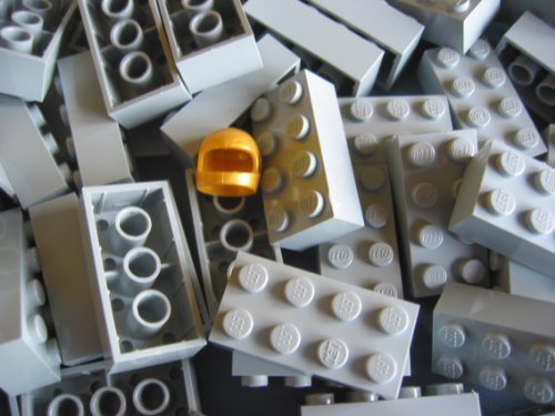 -. Feature : L.E.G.O CITY - 50 Steine im seltenen neuen hellgrau mit 2x4 Noppen - BASIC STEINE / + 1 sehr seltener goldener Helm im Wert von ca. Euro 2,00 / Neuware ohne Original-Verpackung