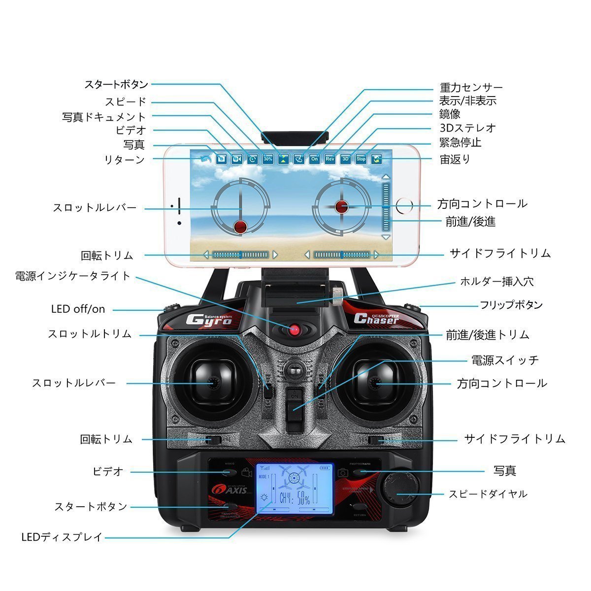 Speed adjustment, somersault, headless mode, mode 1/2 free conversion is possible.